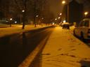 ♦ Da keine Autos auf dem Radstreifen fahren dürfen, ist der Radstreifen noch voller Schnee.