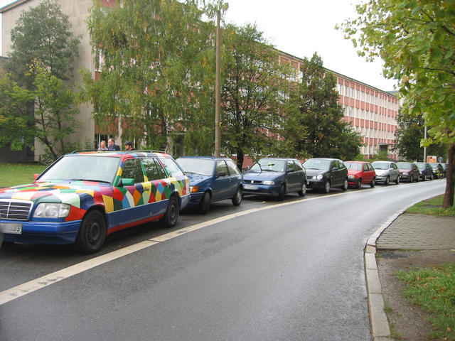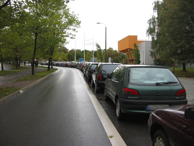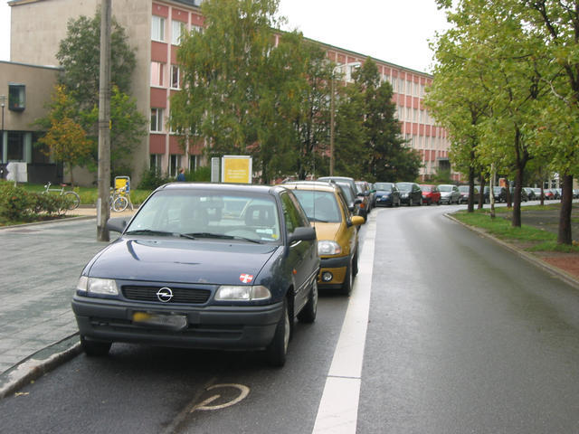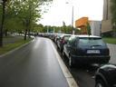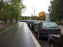 ♦ Aus der Baustelle am 15.8. (damals andere Strassenseite fotografiert) wurde wohl doch noch ein Parkplatz. (Nein. Laut Bauabsicht sollte es ein Rad-Weg! bleiben. Nur fehlt einigen Leuten die notwendige Übersicht der Lage.) 19 Autos parkend. Das ist Rekord.