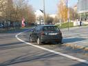 ♦ Der weisse Klecks 5 m vor dem Golf soll ein aufgemeltes Fahrrad sein.