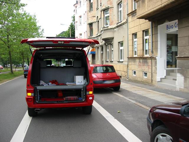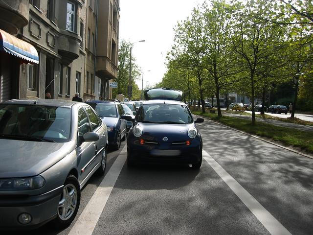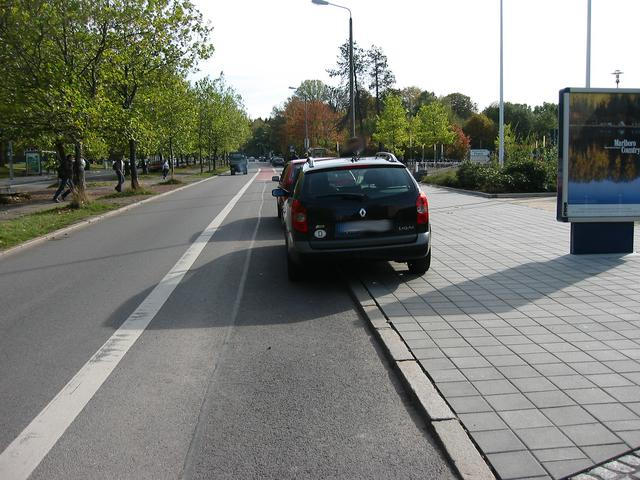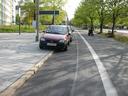 ♦ Kaum eingerichtet, schon als Parkplatz entdeckt. (Auf der Fahrbahn ist parken erlaubt)