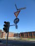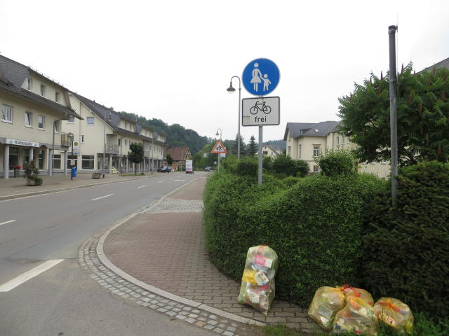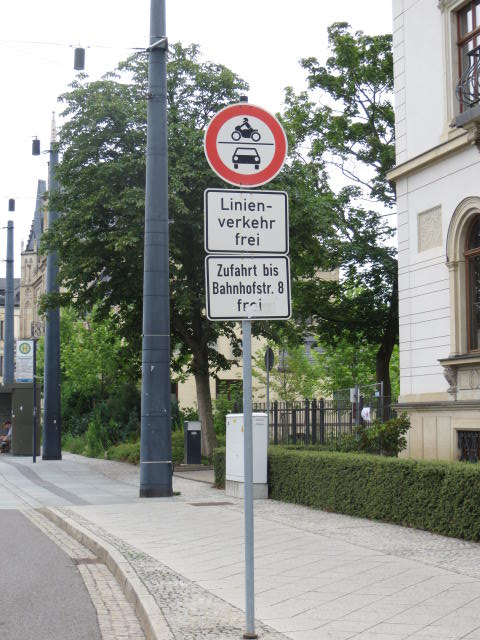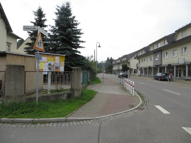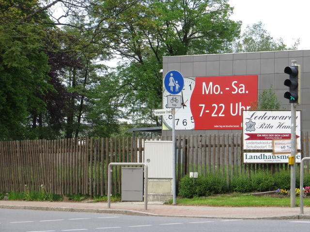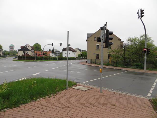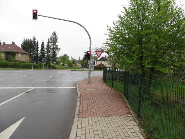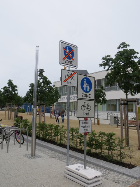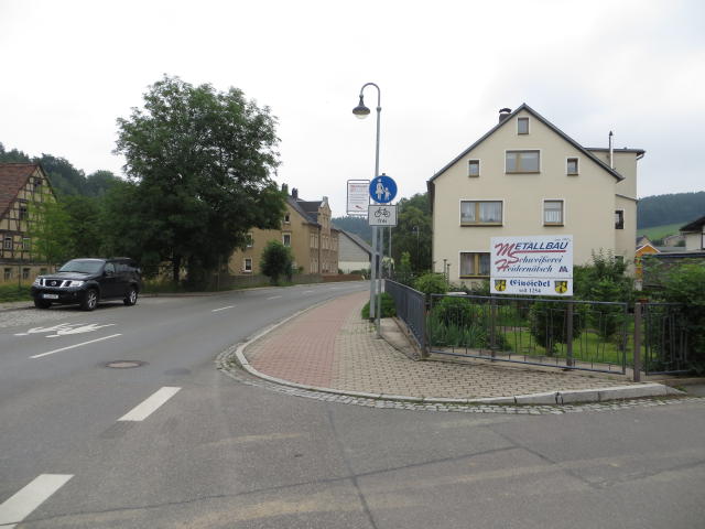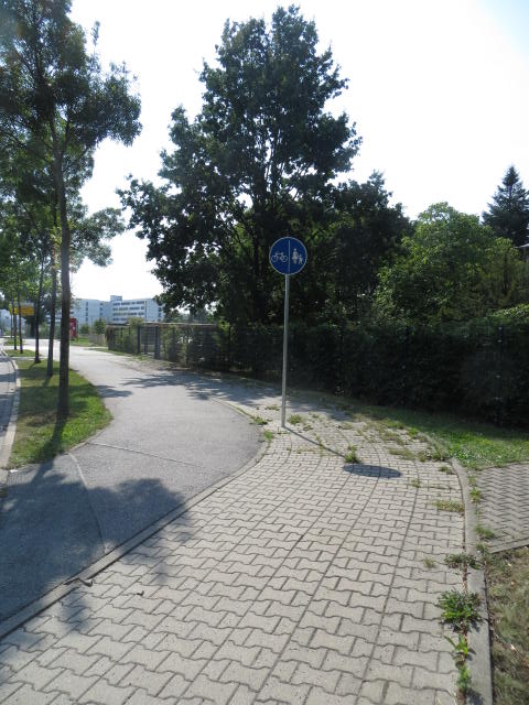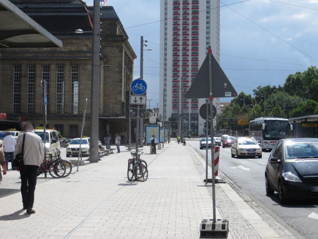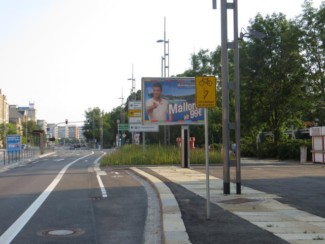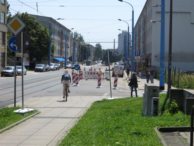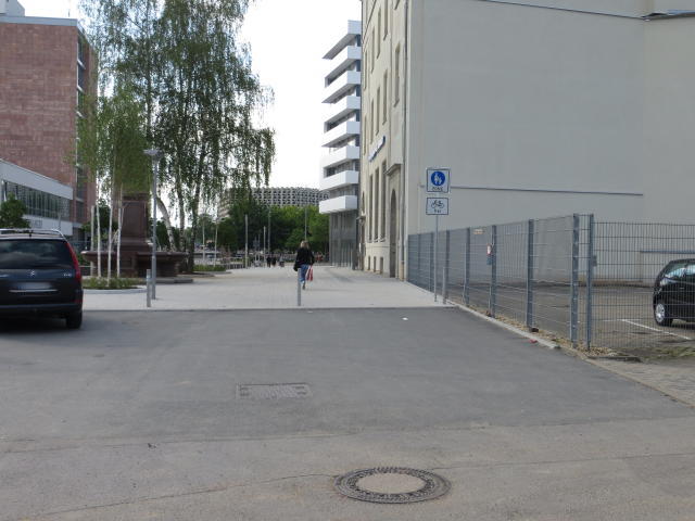 ♦ Eigentlich war ja von 'Neugestaltung' gesprochen worden. Aber nur mal so zum Nachdenken... Wenn man 'gerade aus' will, dann geht das nicht etwa gerade aus. Nein, man muss erst bis zu diesem Radwegschild da links.