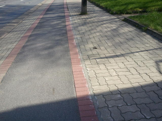 ♦ Ohh. Kurz vor Weihnachten noch ein 'Geschenk'. Der eine oder andere Fußgänger wird's zwar nicht wirklich erkennen, aber ja, das soll ein Radweg sein.