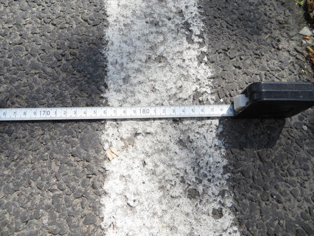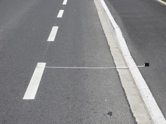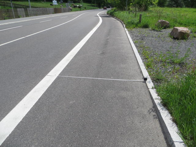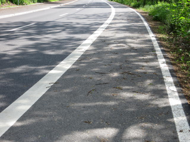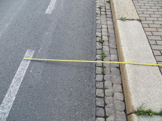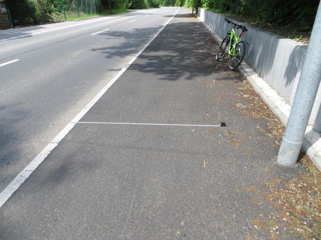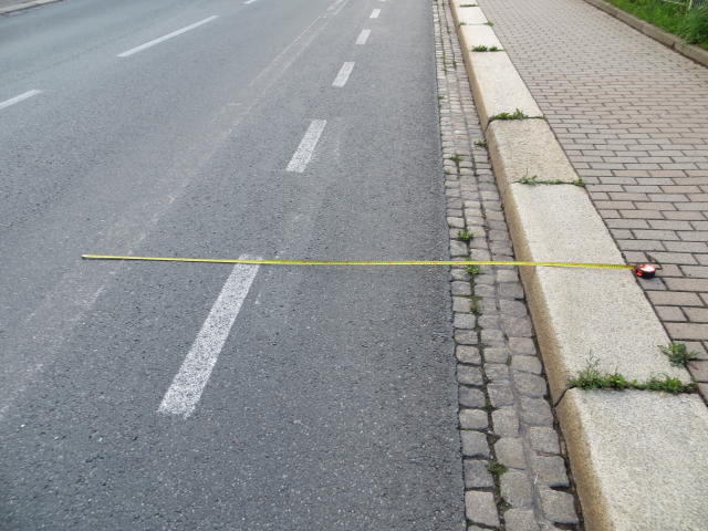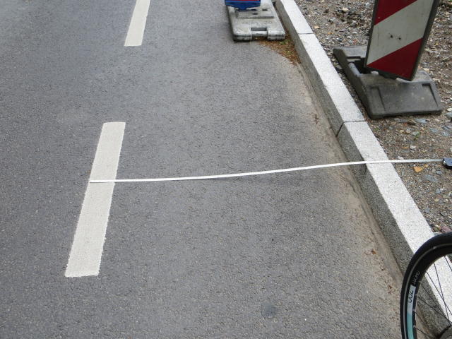 ♦ Nun hat man einen 80cm breiten weißen Streifen. Das soll der Radweg sein.