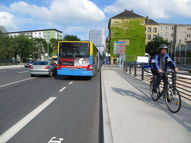 Allerdings hat die Stadt Chemnitz genau das Gegenteil vor. Alle Hauptverkehrsstraßen sollen mit Radwegen ausgestattet werden. Besonderen Vorrang habe die Verbindung der Uni-Teile. Begründung der Stadtverwaltung: Besonders Kinder und Rentner fühlen sich auf Radwegen sicher. Dazu stellen sich mir drei Fragen: