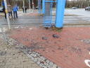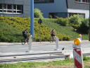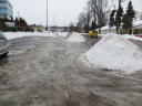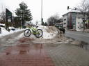 ♦ Zickzack fahren, über Schnee, über Rampe, um Eisbrocken herum. Und das soll für Radfahrer sein? Ich würde gern mal wissen, wie das aussehen würde, wäre es gegen Radfahrer gerichtet.