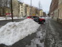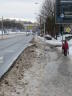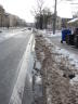 ♦ Die Fahrbahn ist sogar schon wieder trocken, da türmt sich auf dem Radweg noch der Schnee.