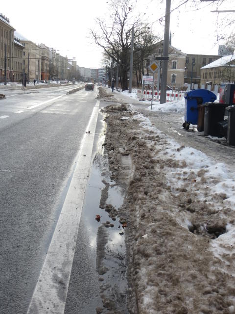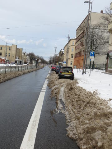 ♦ Ich weiß... nicht wenige finden Radfahrstreifen soooo toll. Kommen die dann im Winter mit Schneeketten auf dem Fahrrad? Oder sind das alles nur Schönwetterfahrer?