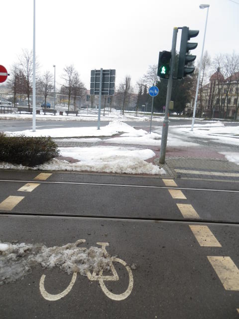 ♦ Und alles wie gehabt. Der Schnee wird weg geschoben und auf dem Radweg abgekippt. Ich hab es schon irgendwie vermisst.