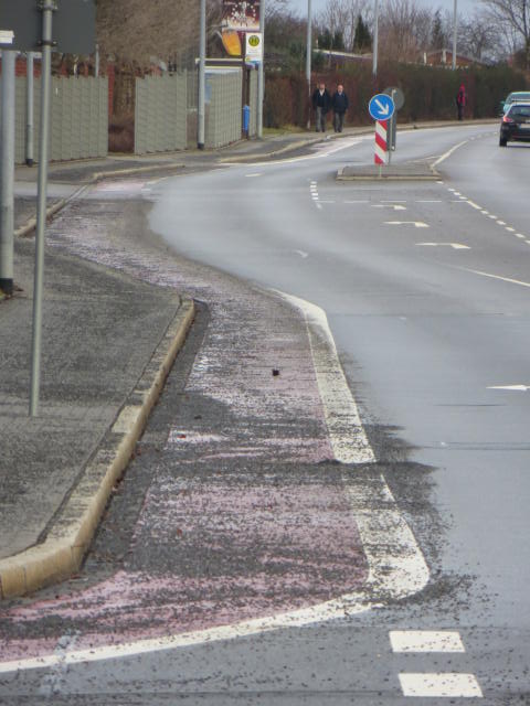 ♦ Und auch wenn es nur noch Dreck ist, ist es unangenehm da drüber zu fahren. Besonders wenn die Fahrbahn wie geleckt aussieht.