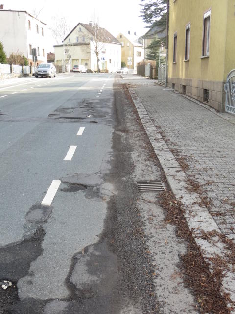 ♦ Man hat mal wieder ein bisschen gepinselt und den Sch(m)utzstreifen in der Heimat ein wenig verlängert. Und weil es so schön ist, einfach mal eine Komplettdurchfahrt von Anfang bis Ende (und zurück). Man achte besonders auf den Dreck und die andauernd in unmittelbarer Nachbarschaft befindlichen Parkplätze.