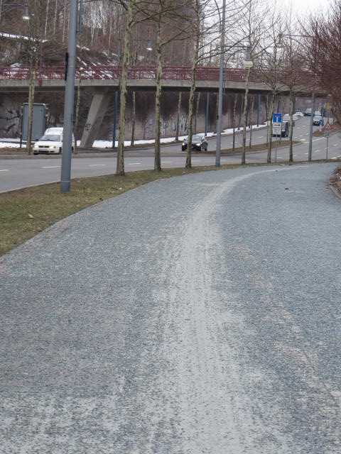 ♦ So sieht das dann aus, wenn man den Radweg als Schneeablage verwendet. Wegmachen tut das dann auch keiner.