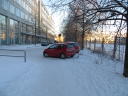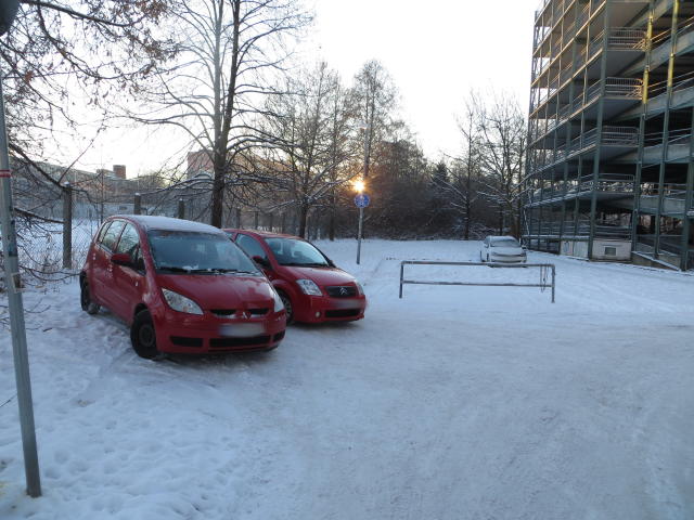 ♦ Mittlerweile haben wohl genug Autos geparkt, so dass ein wenig vom Schnee weg ist. Befahrbar ist das kaum.
