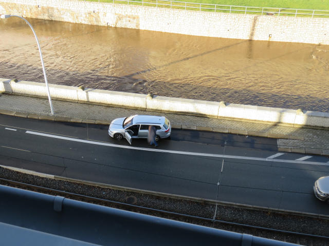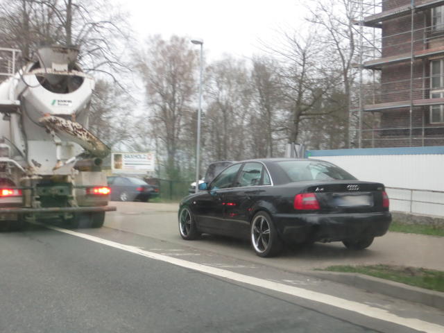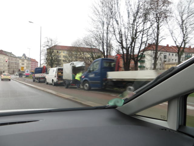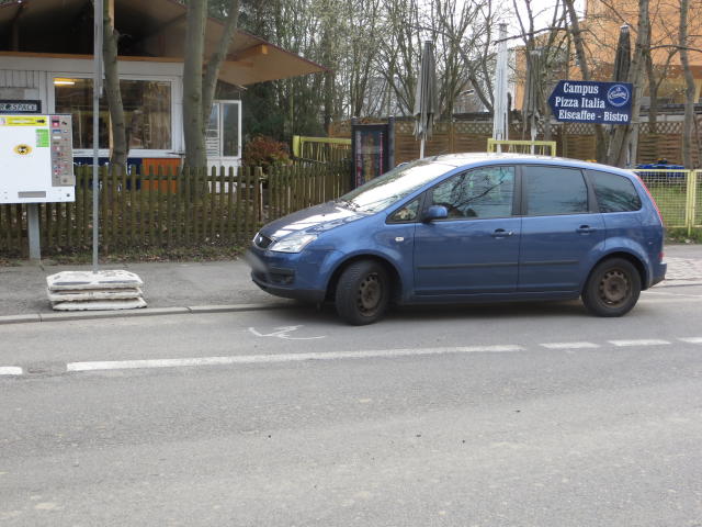♦ Ich hoffe, da kommt keiner auf die Idee, sich da noch am Auto vorbei zu mogeln. Das könnte dumm ausgehen, wenn da von hinten ein LKW kommt oder die Tür aufgeht.