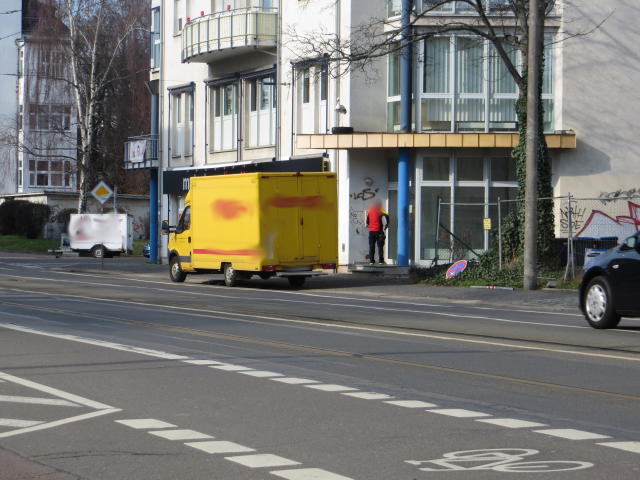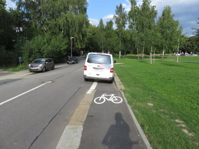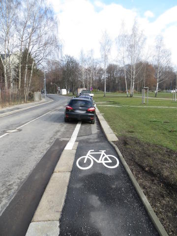 ♦ Auf der Fahrbahn ist Halteverbot. Nur gut dass da ein Radweg ist!