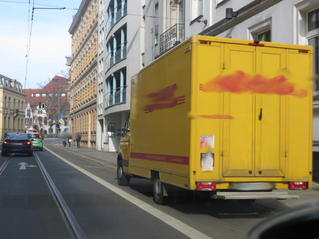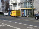 ♦ Der liefert sogar drüben auf der anderen Seite. Wieso parkt der nicht auch genau dort vor der Tür?