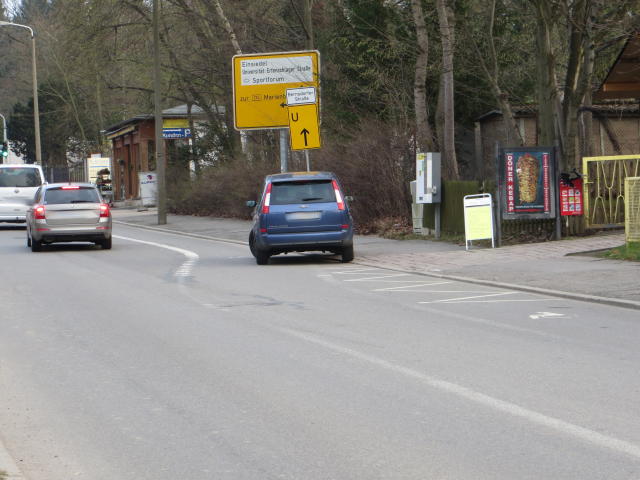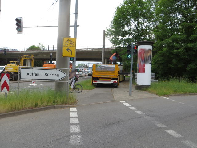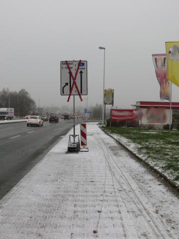 ♦ Anderenorts hätte man da lang fahren hönnen. So muss man doch nochmal 100m Umweg fahren.