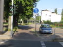 ♦ Was für ein Witz: Derjenige, der das 'Radfahrer frei' Schild aufhängt, parkt das Streifchen zu.
