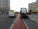 ♦ Na ein Glück: Der Radweg fängt erst nach dem LKW an.