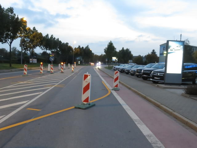 ♦ Der Radfahrstreifen auf der Fahrbahn ist nun auch unerreichbar geworden.