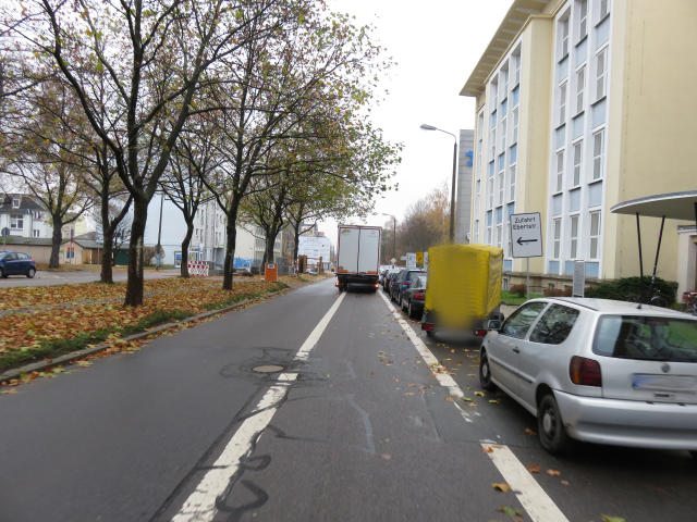 ♦ Die Fahrbahn ist üppig breit. Wieso parken die nicht da?