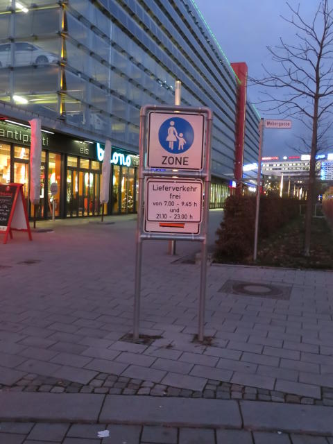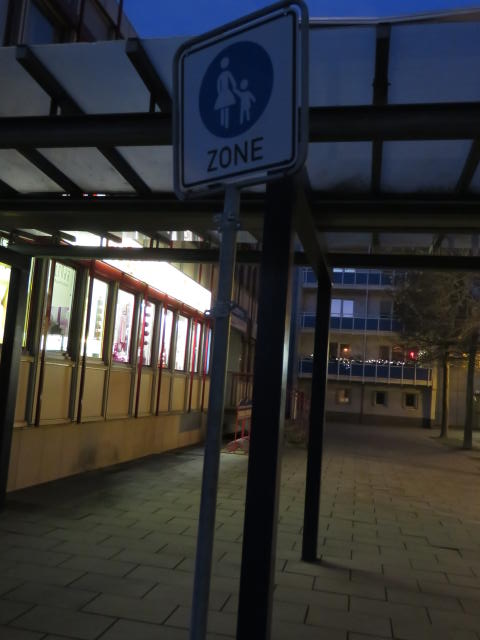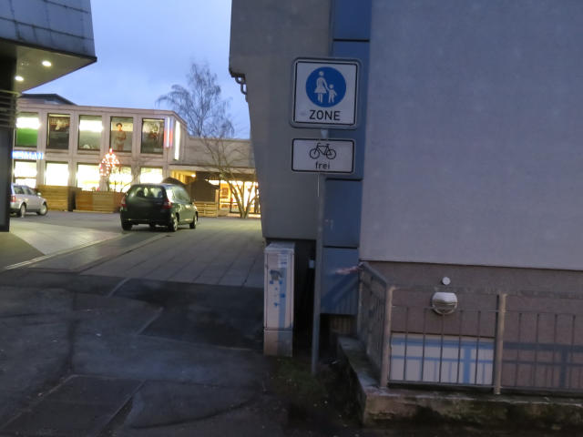 ♦ Das hier ist der Weg vom Weihnachtsmarkt weg (der ist hinter uns). Absurderweise ist am anderen Ende das Reinfahren erlaubt!