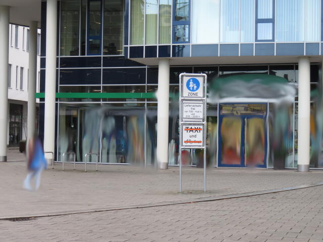 ♦ Hat man das Schild nun ernsthaft aufgestellt, um es durchstreichen zu können?