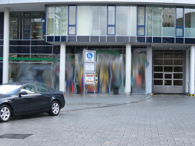 ♦ So fährt zum Glück niemand unter dem Aufzug durch.