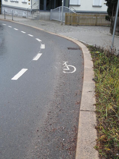 ♦ So ist schon fast 'besser'. Da ist dann klar, dass den Rest vom Streifchen besser kein Radfahrer nutzt.