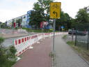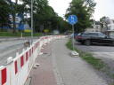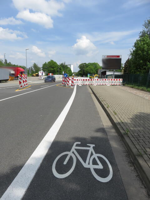 ♦ Nun ist die Baustelle in der Mitte eigentlich weg. Wieso ist der Radweg noch immer 'zu Ende'. Und wie soll man jetzt als Radfahrer hier fahren?