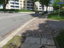 ♦ Angesichts dessen, dasss man hier schon wegen der Bordsteinkante aufzupassen hat, ist dieser bröckelige Asphalt eine ziemliche Falle.
