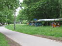 ♦ Kann man ja kaum erkennen, dass das der Radweg sein soll, mit dem ganzen Kram da drauf!