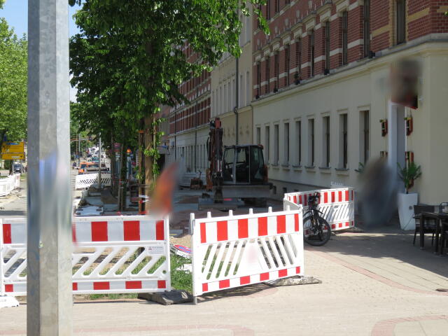 ♦ Seit Mitte März darf Radverkehr hier nicht gerade aus fahren. Sehr schade.