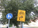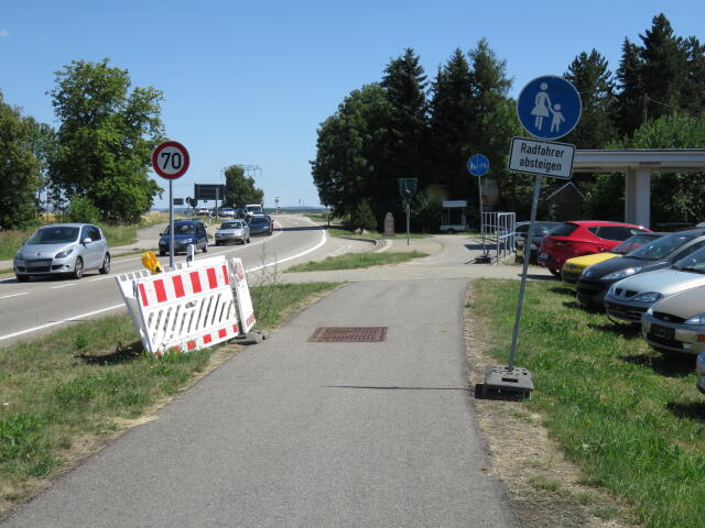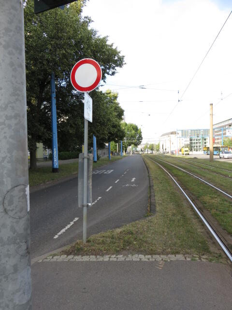♦ Man darf sich dumm fühlen, hier absteigen zu müssen (und dann gleich wieder aufsteigen zu dürfen). I-Tüpfelchen der falsche Strich im hinteren Schild.