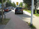 ♦ Die Linien sind längst verschwunden. Aber eigentlich wäre da wo der Parkt der Radweg.