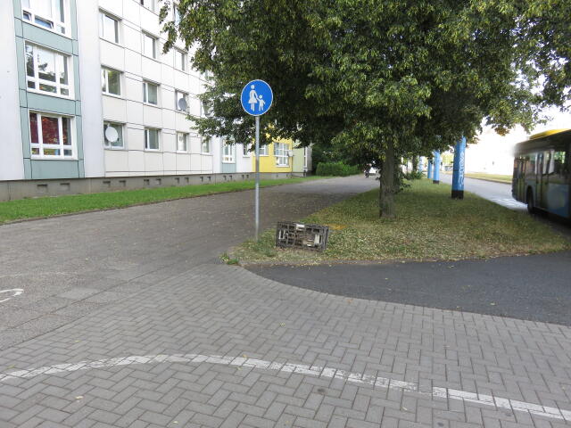 ♦ Ist ja schön, dass man hier 3m Schrittgeschwindigkeit fahren soll. Wenigstens darf man dann danach die gesamte Gehwegbereite befahren. Wie praktisch so ein falsches Schild. Oder war es gar von langer Hand geplant?