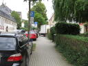 ♦ Die Strecke parallel zur Augustusburger Straße wird immer gern als Beispiel für 'Radführung abseits der Hauptstraße' genannt. Hier eine Mischfläche, weil einfach zu wenig Platz ist.