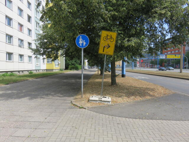 ♦ Ist doch recht eindeutig beschildert, dass das ein Radweg sein soll. Sogar mit echter Radfahrerin.
