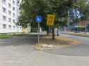 ♦ Da kann man ja schon fast dankbar sein, dass da noch die Bake steht. Da ignoriert man auch gern, dass man da illegal den Gehweg befahren muss. (Oder man hält an, steigt ab und schiebt. Ja, wirklich!)