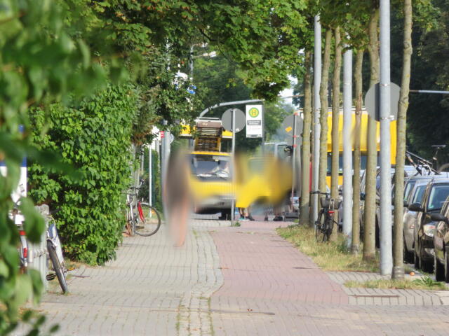 ♦ Und natürlich einer Bushaltestelle, wo im 5min Takt Busse halten. Für mehr war da bei knapp 40m Straßenbreite einfach kein Platz. Achja. Auch das ist im Kernnetz.