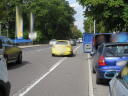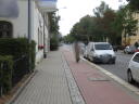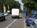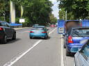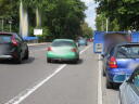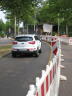 ♦ Man achte auch darauf, dass der Bereich für die Autos langsam schmaler (und letztendlich zu schmal) wird. Da wird zum Fahren auf Sch(m)utzstreifchen erzogen.