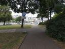 ♦ Ah. Man hat was gebaut. Laut Schild darf man den Weg in voller Breite befahren. Doch mit der schrägen Kante am Rand ist das eher nicht zu empfehlen. Dort aus Versehen drauf geraten, kann den Lenker schnell verreißen.