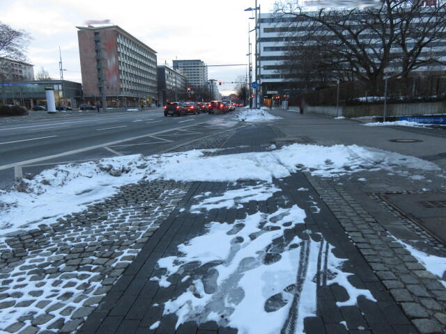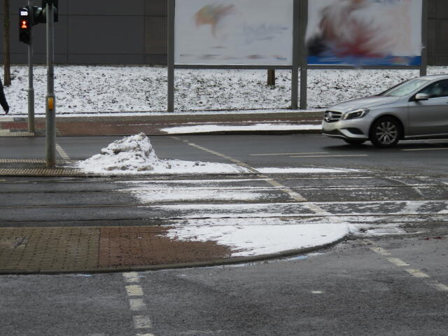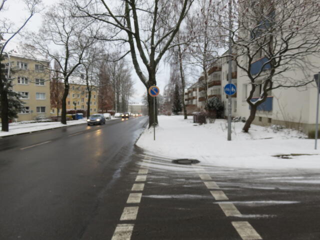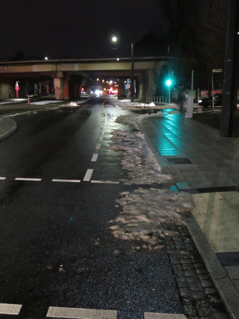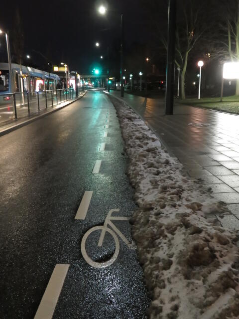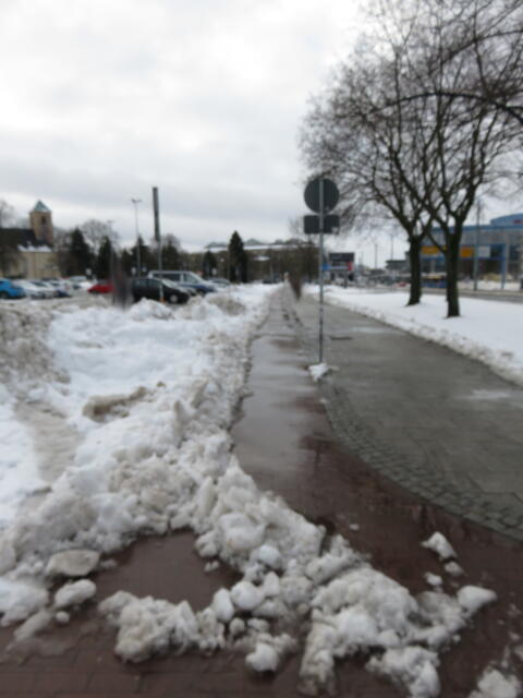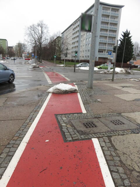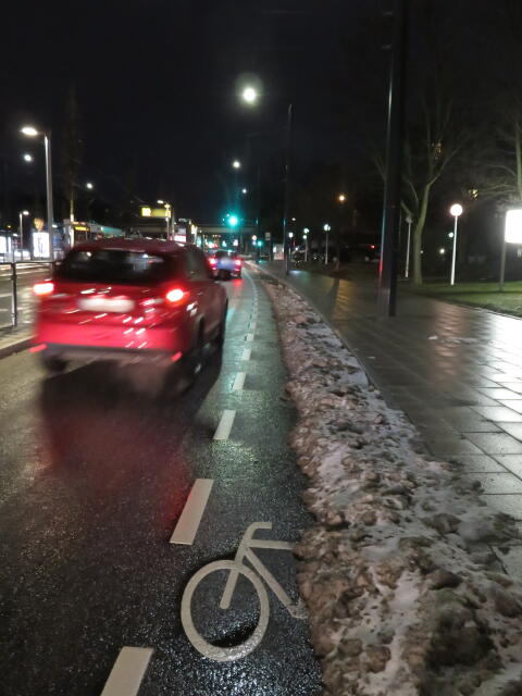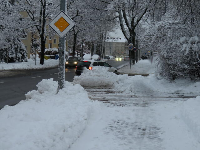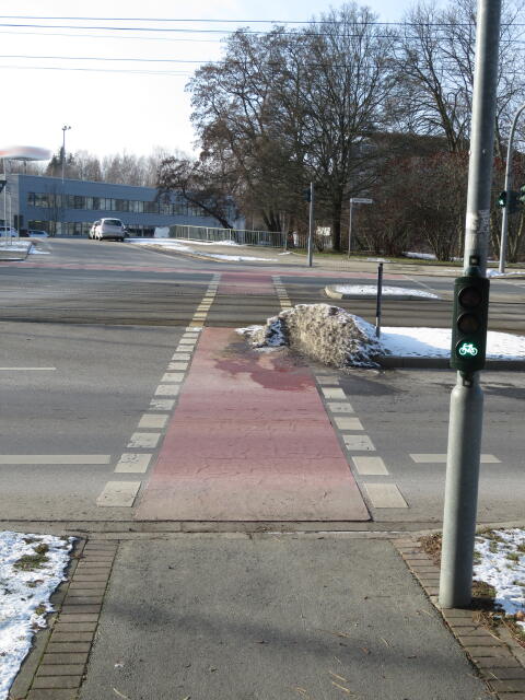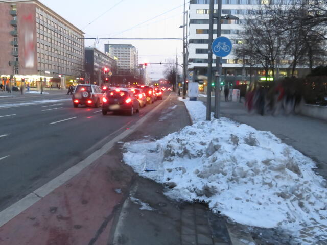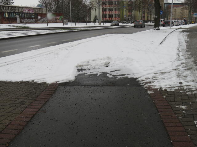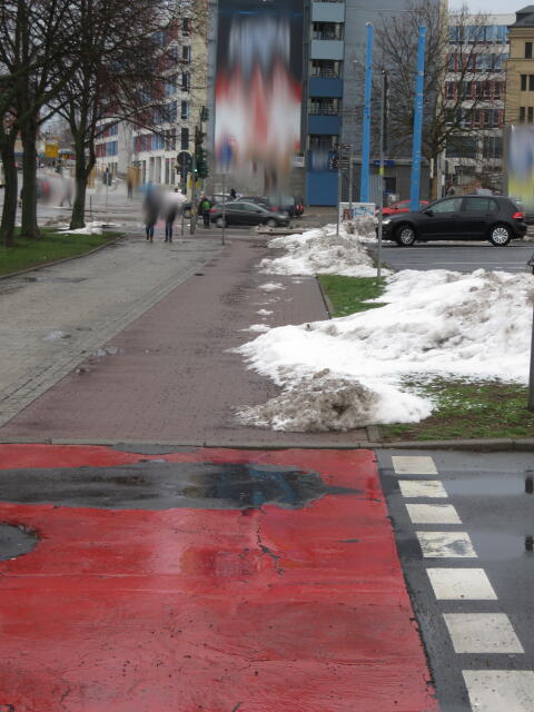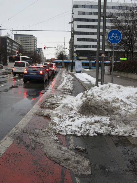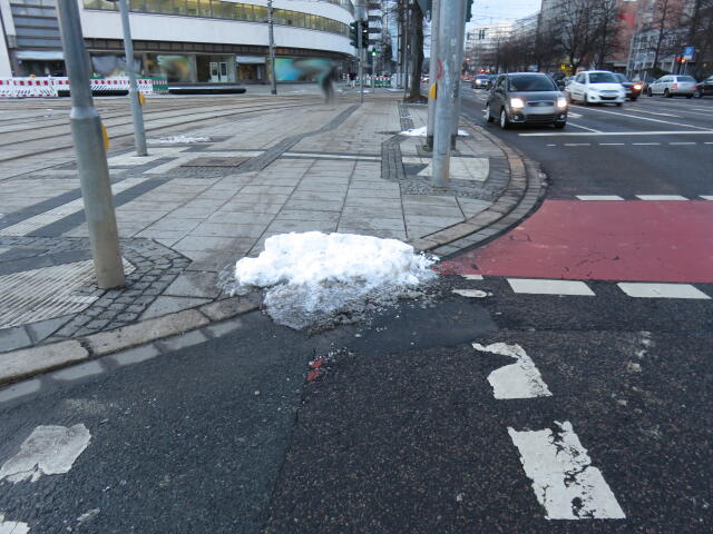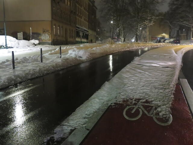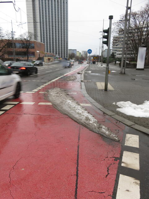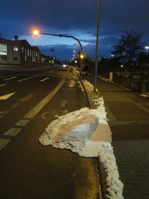 ♦ Auch hier geschickt den Schnee auf den Radweg geschoben. Kommt man gar nicht auf den verschneiten Sch(m)utzstreifen.