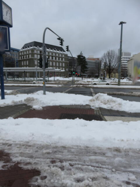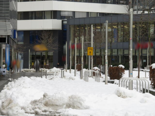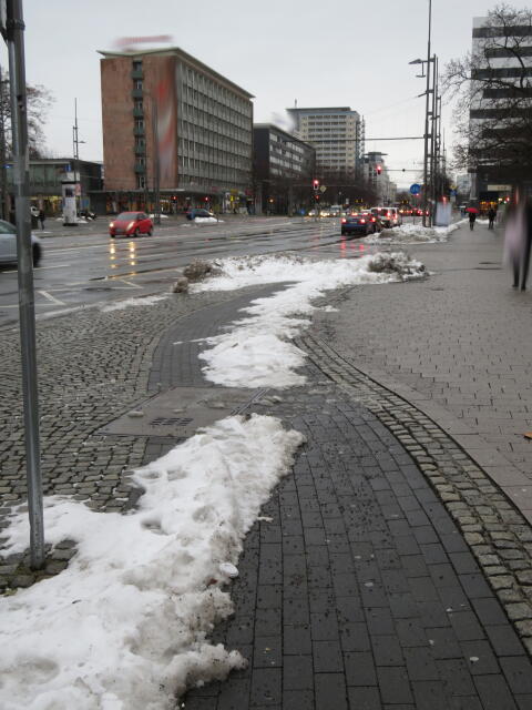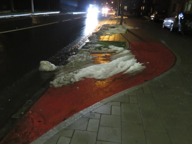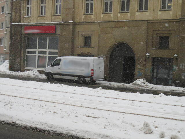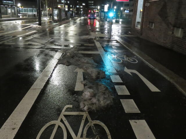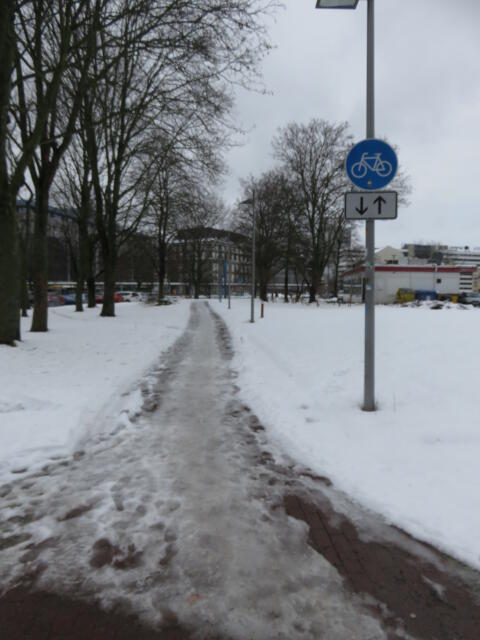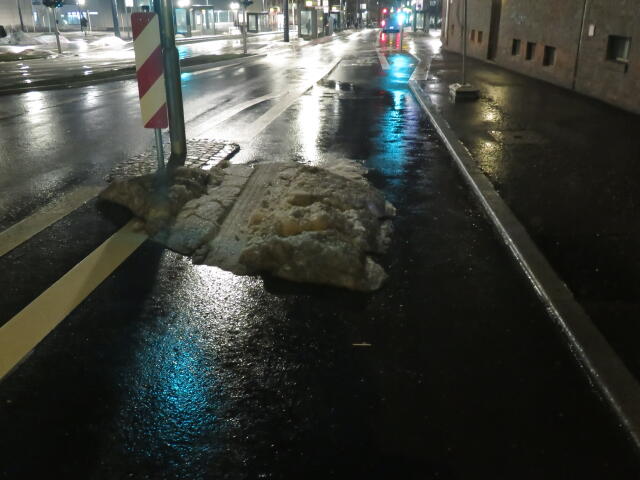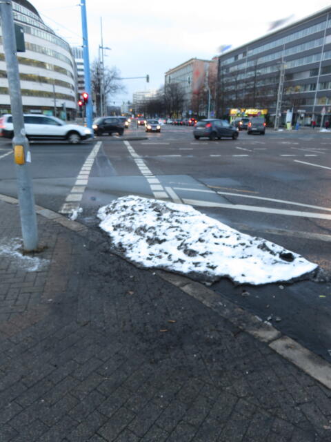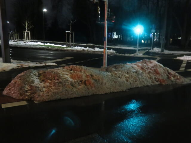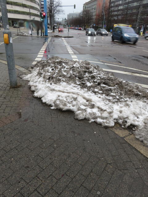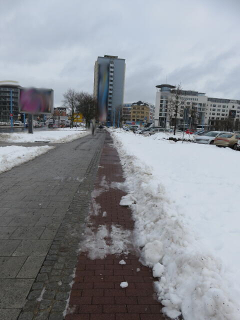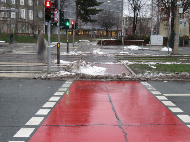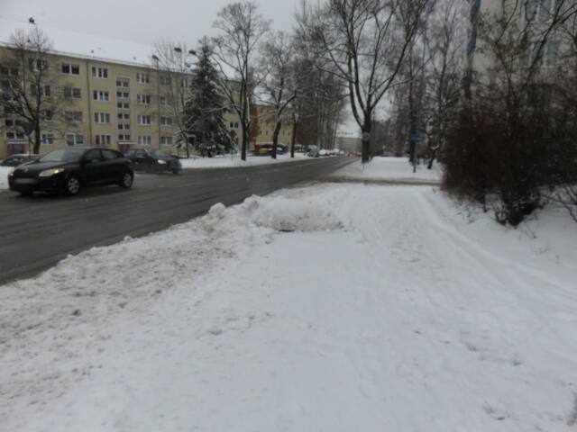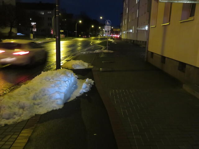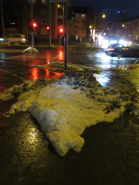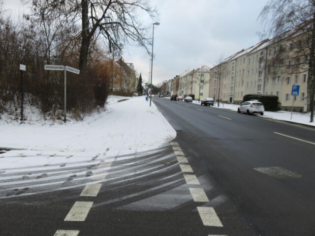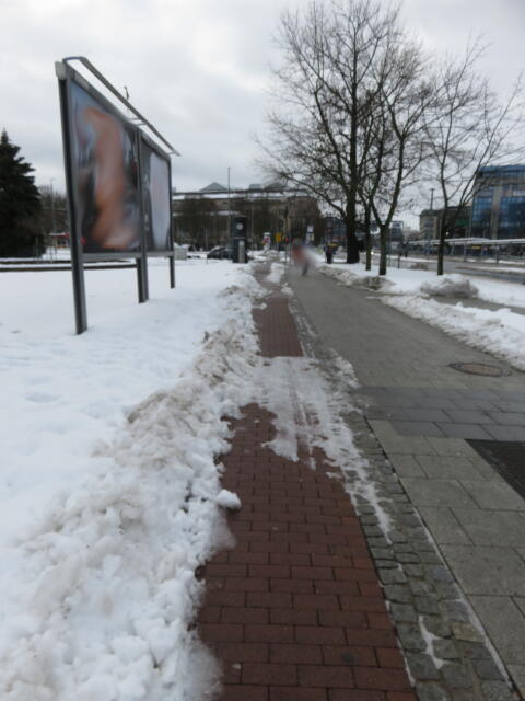 ♦ Auch hier geschickt den Schnee auf den Radweg geschoben. Kommt man gar nicht auf den verschneiten Sch(m)utzstreifen.
