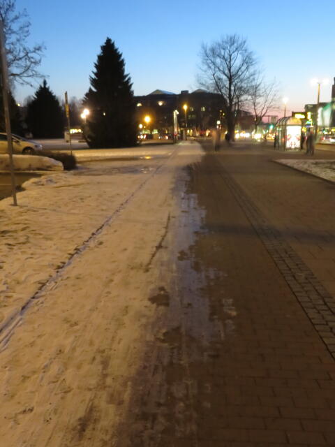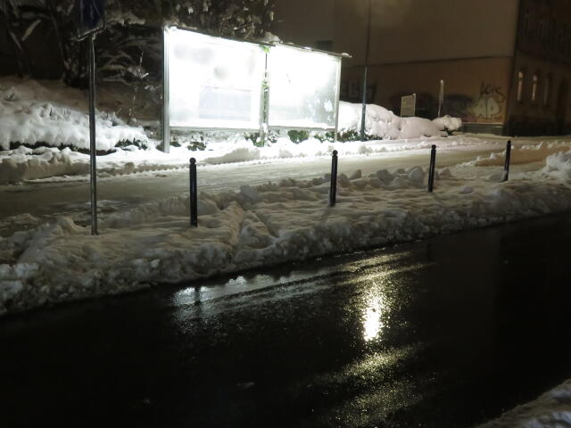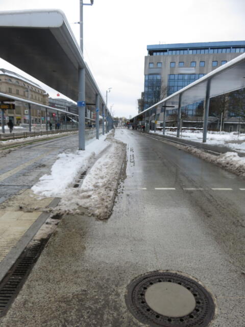 ♦ Wer sich erinnert: Da rechts unter dem Schnee ist eine Aufstellfläche, um auf den Bus von vorn zu warten.