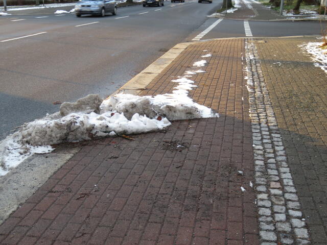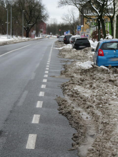 ♦ Und schon wieder schützt der Schutzstreifen nur Schnee vorm Breitgefahren werden.