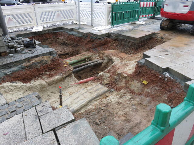♦ Und nun? Für Fußgänger gesperrt. Und Radfahrer? Über die Bordsteinkante auf der anderen Seite fahren? Unangenehm und dann auch un-legal.