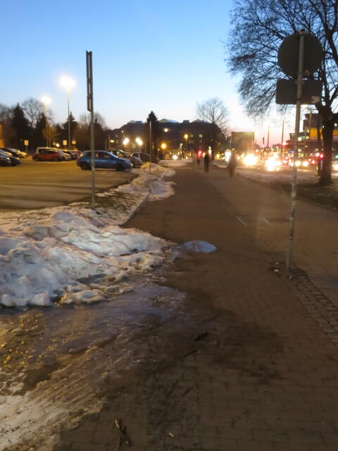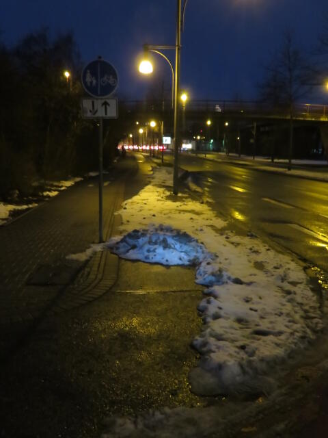 ♦ Noch nach einem Tag Tauwetter fast alles weg. Auch der Radweg könnte wieder frei sein. Aber da musste ja jemand unbedingt den Schnee drauf schieben.