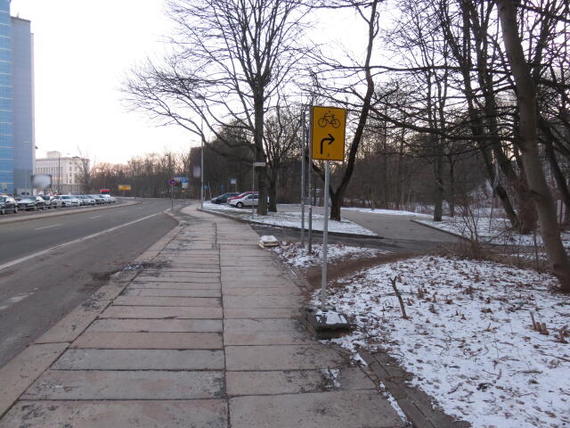 ♦ Ab hier soll man eigentlich sowieso die Fahrbahn nutzen (weil mit hoher Geschwindigkeit bergab auf dem Gehweg ist ziemlich gefährlich für alle).