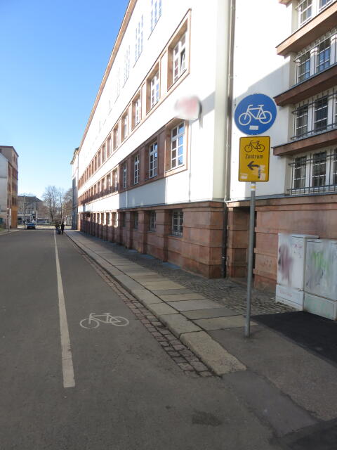 ♦ Das wäre dann die Alternativstrecke zur kaputtgebauten Bernsdorfer Straße (die mit den Schrägparkern), um zwischen den Uni-Teilen zu wechseln.