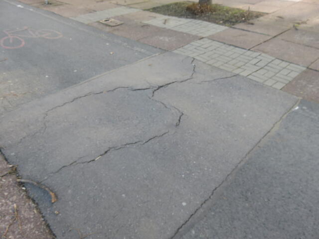 ♦ Benutzungspflichtiger Radweg in einer Sackgasse (also nicht wirklich mit viel Verkehr). Aber dafür mit um so größeren Huckeln.